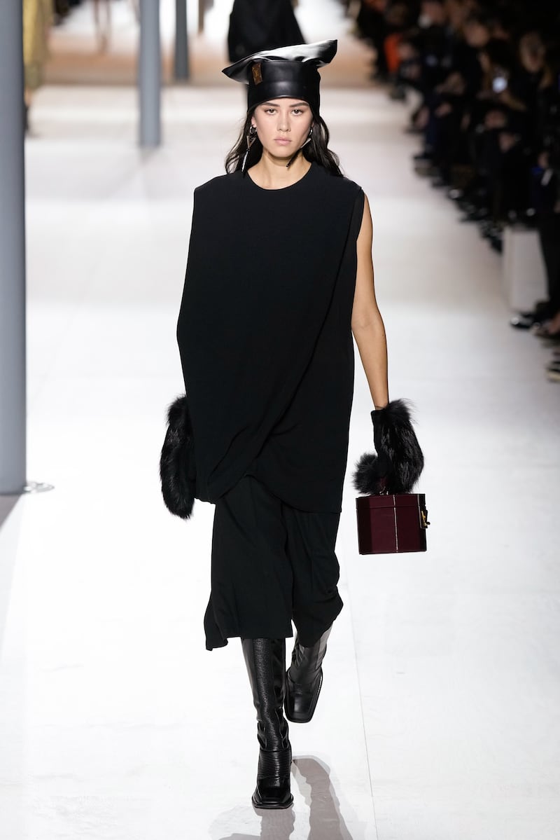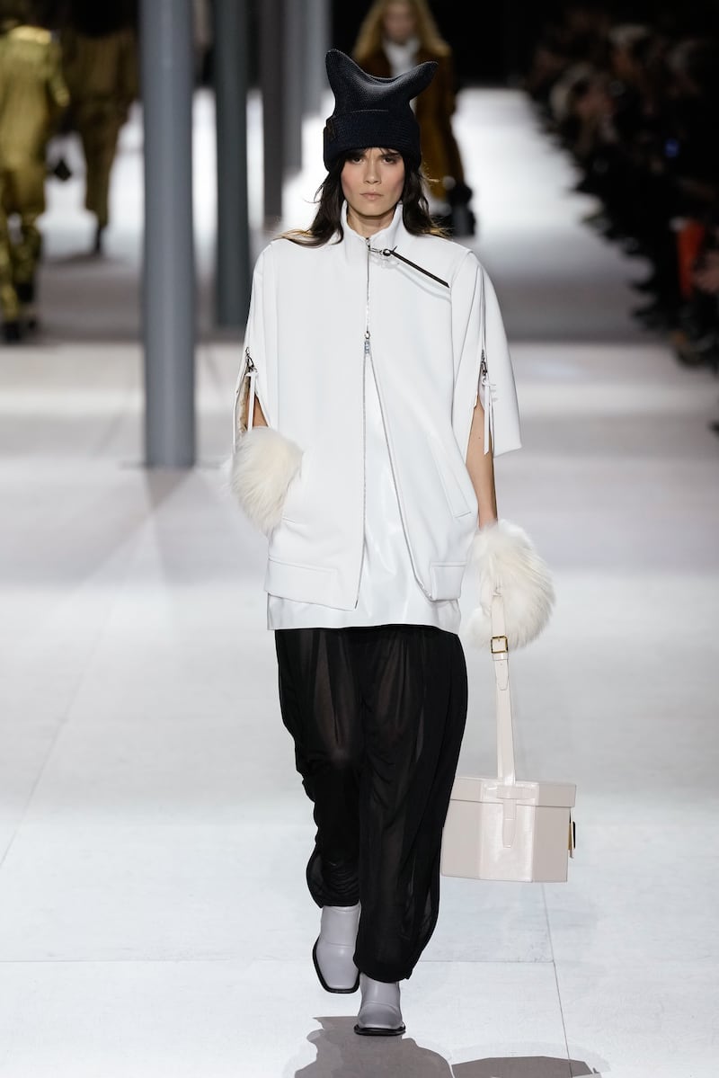 Although “Dune 2″ opened this week, also in IMAX, and Ghesquière’s love of sci-fi (I told you it was a theme this season) inclined him to a clutch of all-white looks with functional big pockets that wouldn’t be out of place in Denis Villeneuve’s space. Shiny fabrics, big paillettes and assorted alien closures sustained the illusion. The models had furry paws (wookie hands, rather than the wookie feet Milan favoured). A couple of dresses trompe-ed a Vuitton trunk with its hardware, like something half-remembered from another millennium.