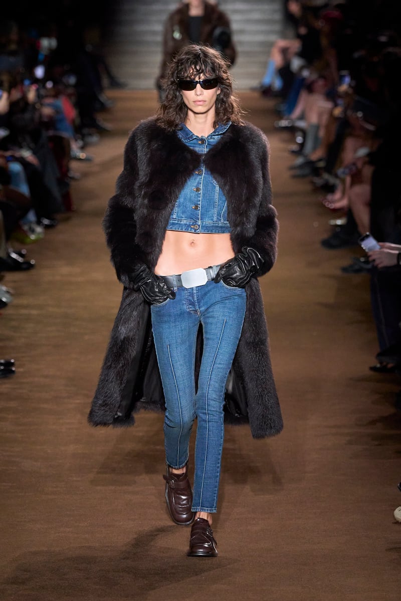 We were talking about corduroy at the time. Tuesday’s confrontation involved the jeans and fur coat combination worn by Rianne Van Rompaey and Mica Argañaraz. I told her I don’t think there’s any such thing as bad taste. She laughed heartily. She knew her last look – a savagely chic black cocktail dress with a sly cut out on the thigh – countered anything I had to say. Anyway, I find it immensely reassuring that Miuccia Prada has Miu Miu as a piece of her life, because it makes the fashion world a better place.